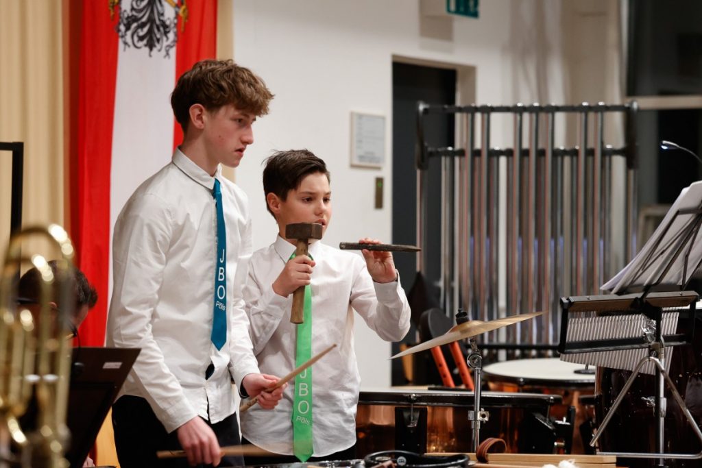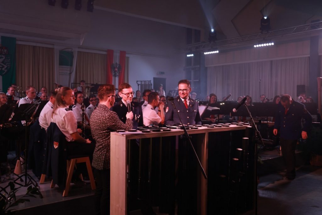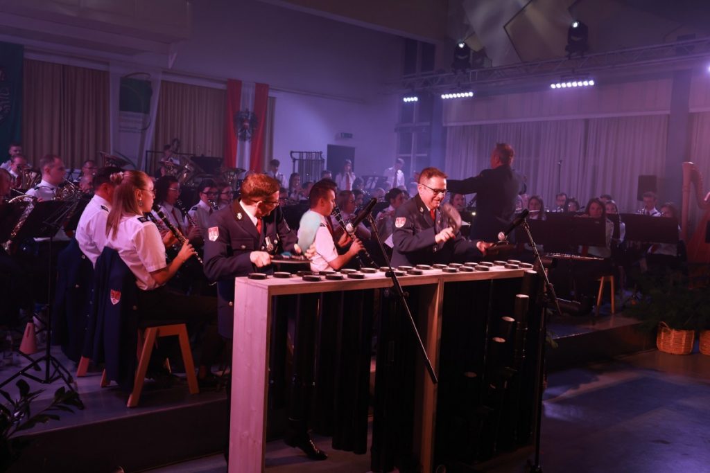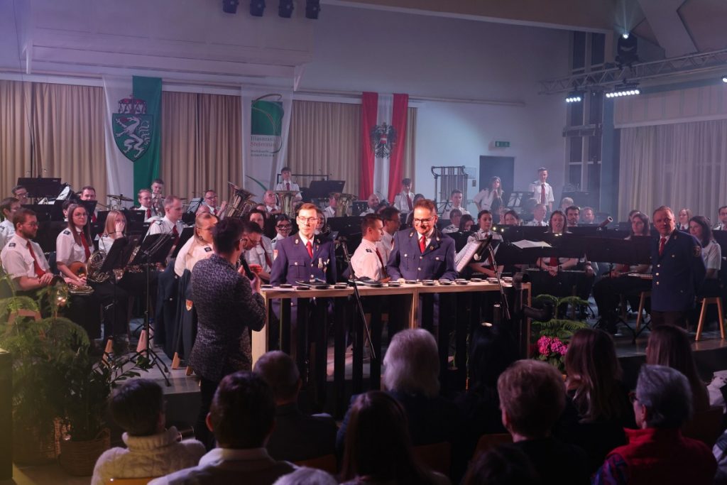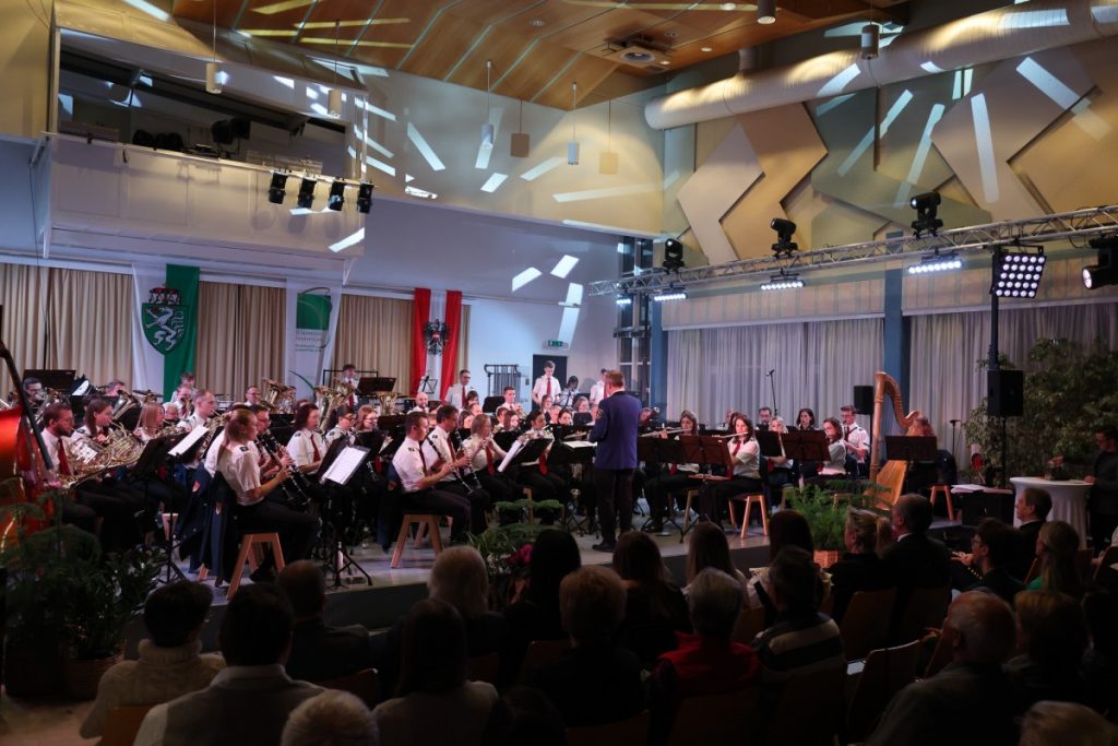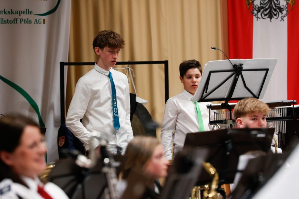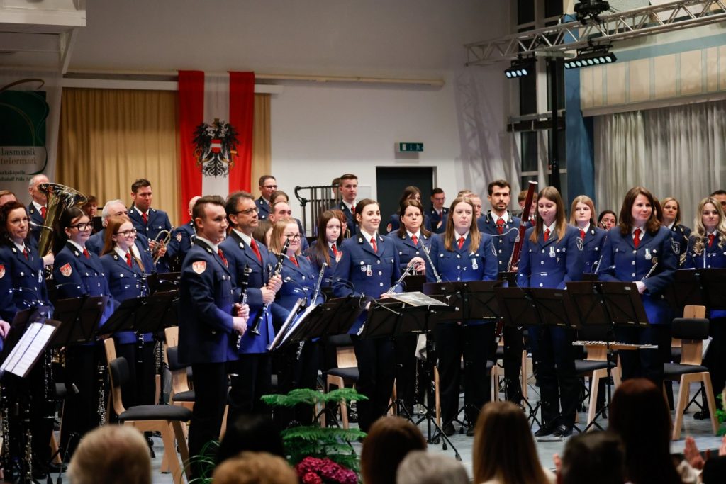 Es war ein neues Konzept, das voll aufging. Am 20. und 21. März fand das traditionelle Frühjahrskonzert der Werkskapelle Pöls erstmals an 2 Konzerttagen und damit im „Doppelpack“ statt. Der Kultursaal war dabei zweimal ausverkauft, und auch die 66 Musiker:innen des Blasorchesters performten unter der Leitung von Kapellmeister Markus Poier an beiden Abenden in Höchstform. Das Programm spannte einen interessanten Bogen von zeitgenössischer Komposition („When nature strikes back“) über Filmmusik („The Lions King“) bis hin zu den unverzichtbaren Klassikern im Zugabenblock („Bozner Bergsteigermarsch“). Ein besonderes „Schmankerl“ war das „Queen-Greatest-Hits-Medley“ mit Stefan Tiefengruber und Gerald Poier am „Tubulum“. Als Solist:innen überzeugten weiters Magdalena Pöllauer, Lorena Nestelbacher und Simon Pöllauer. In ihren Grußworten hoben die Präsidenten der Werkskapelle, Werner Hartmann (am Freitag) und Kurt Maier (am Samstag), die Bedeutung der Blasmusik für das gesellschaftliche Leben hervor und lobten die Unterstützung des örtlichen Leitbetriebs für die Kapelle. Eine kleine Überraschung gab es dann noch für den Kapellmeister, der heuer ja einen runden Geburtstag gefeiert hat, und ein starkes Zeichen setzte wie immer auch der musikalische Nachwuchs: Das Jugendblasorchester bestritt an beiden Abenden den Konzertauftakt und überzeugte auf ganzer Linie.