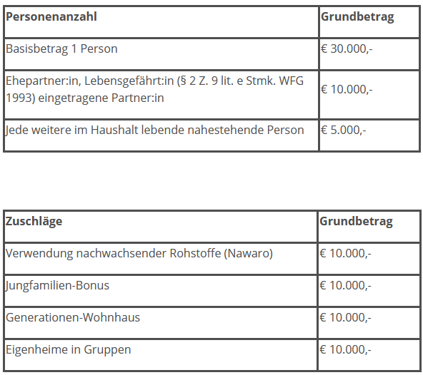 Die Förderung richtet sich an natürliche Personen, die ein Eigenheim (ein- oder zwei Wohneinheiten, Zubau oder Einbau einer neuen geschlossenen Wohnung bei bestehenden Wohngebäuden) zur Eigennutzung errichten.