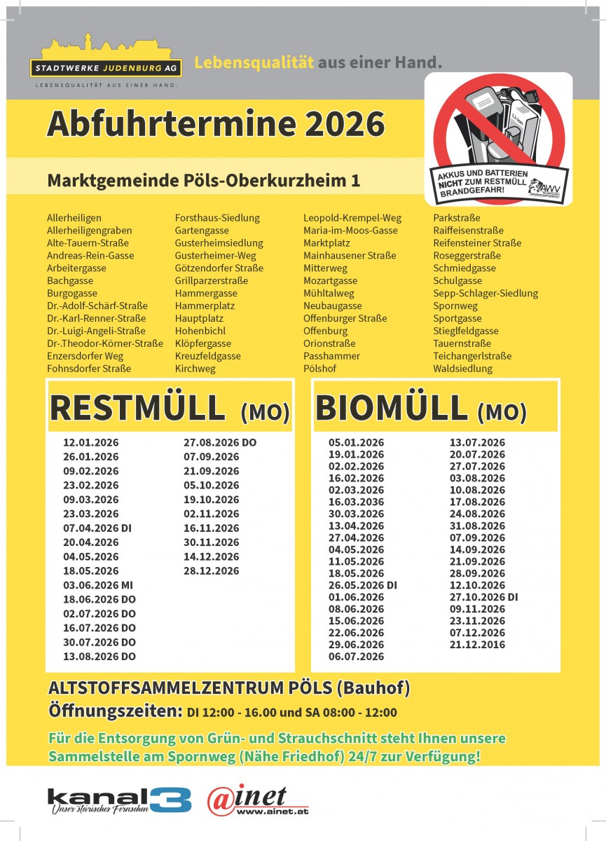 im Müllbüro (EG) der Marktgemeinde Pöls-Oberkurzheim