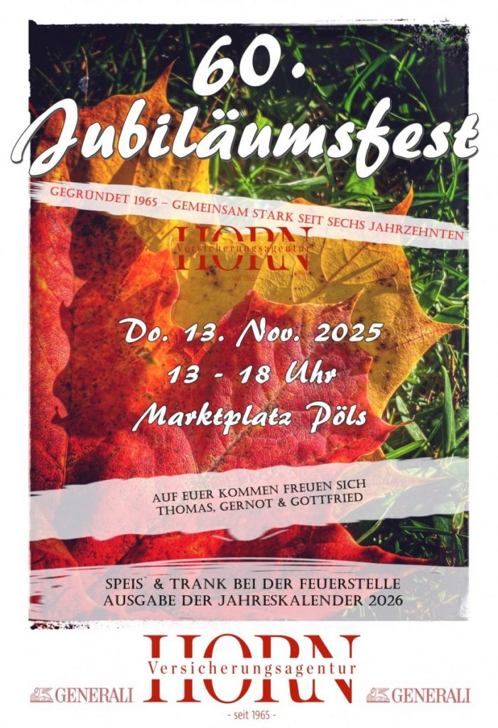 Wir feiern 60 Jahre Vertrauen, Sicherheit und Partnerschaft – und möchten diesen besonderen Anlass mit euch gemeinsam zelebrieren! Kommt vorbei, stoßt mit uns an und feiert mit uns 60 erfolgreiche Jahre voller Begegnungen, Geschichten und gemeinsamer Wege.